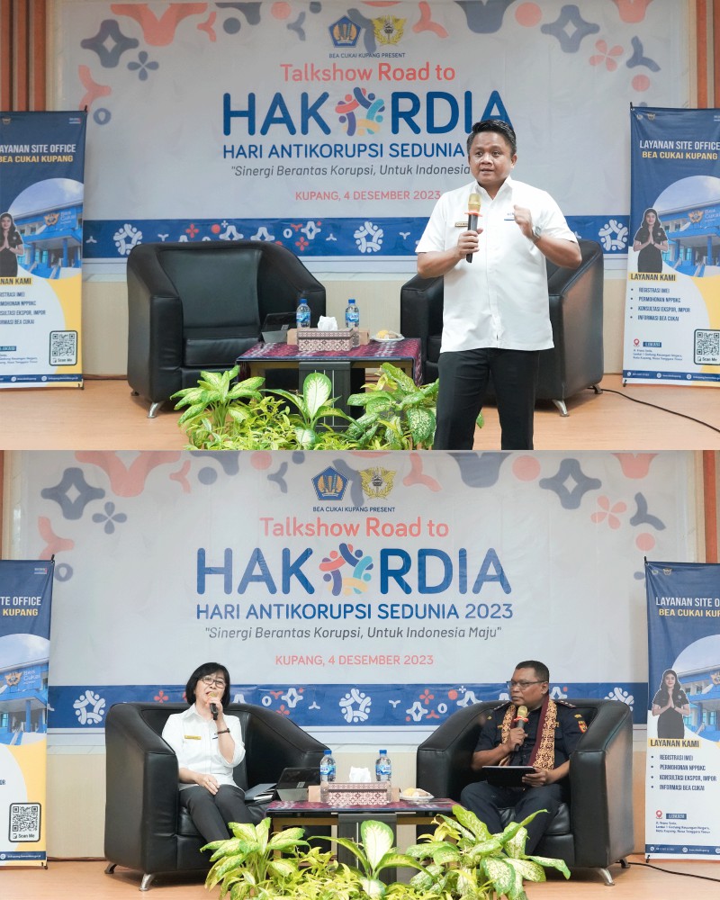 Senin, 4 Desember 2023, Bea Cukai Kupang mengadakan kegiatan Talkshow Road To Hakordia bertemakan "Sinergi Berantas Korupsi untuk Indonesia Maju" dan Pemberian Penghargaan Pengguna Jasa Terbaik di Aula Sumba, Lantai 1, Gedung Keuangan Negara Kupang yang diikuti oleh Pengguna Jasa, Media, Kemenkeu Satu Kupang, dan Pegawai Kantor Bea Cukai Kupang.